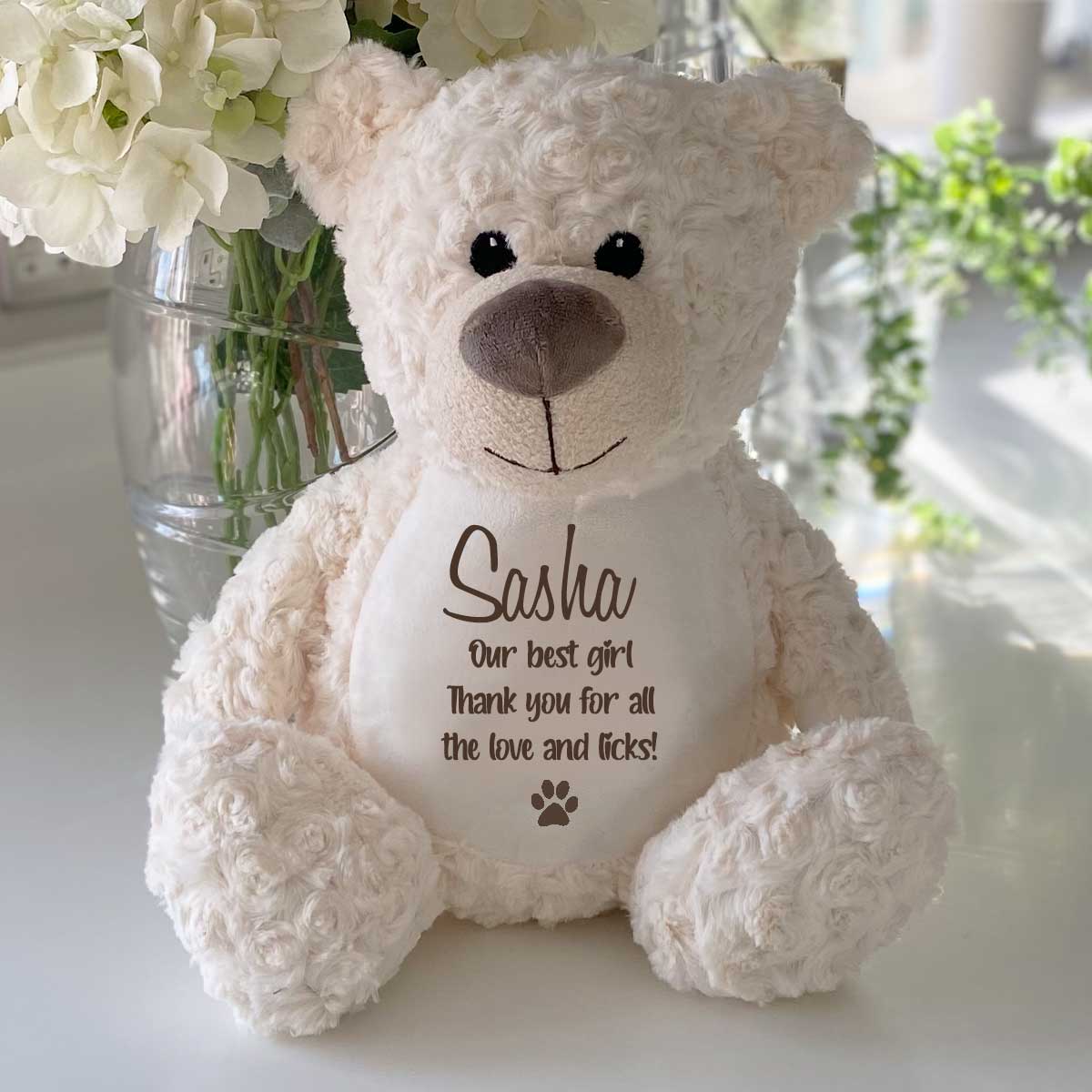 The Pet Recording Keepsake Doll is a unique, customizable plush that captures your pet’s voice or favorite sounds, allowing you to cherish their memory in a heartfelt and lasting way.